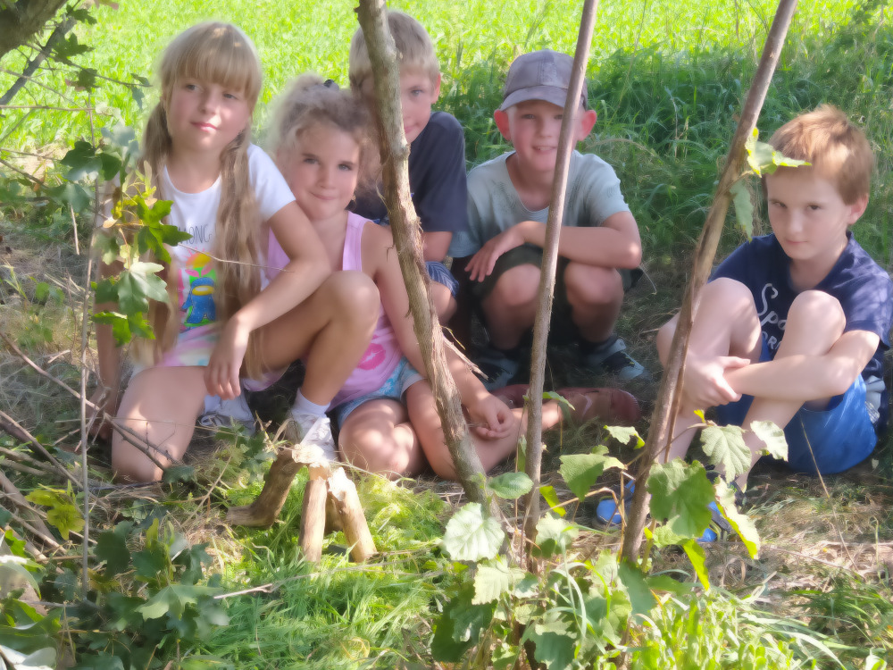 Společná procházka obou družin tentokrát s úkolem. Děti se rozdělily na skupinky a každá měla v určitém časovém limitu postavit