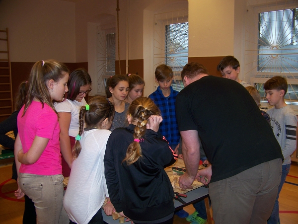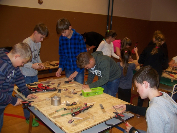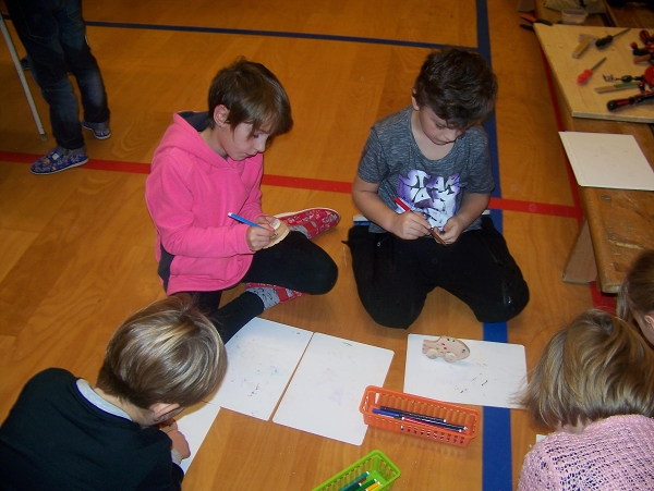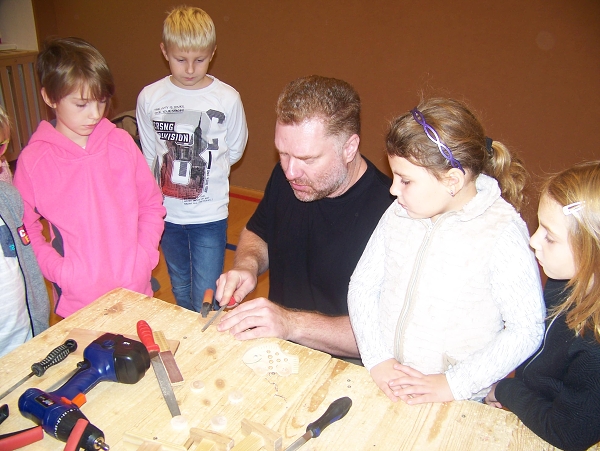 Práce se dřevem je velmi lákavá a voňavá. 6. listopadu naši základní školu navštívili odborníci s ukázkami práce se dřevem v rámci Dřevíčkovy dílničky. Pro tvoření si s ohledem na blížící se předvánoční období zvolili téma „Vánoce“. Pod vedením pana Pilnáčka si svou dovednost s nástroji vyzkoušeli všichni žáci 1. až 5. ročníku. Zpočátku někteří ani netušili, jaké nářadí a pomůcky jsou zapotřebí při výrobě ozdob, hraček či nábytku. Překvapilo nás, s jakou vervou, elánem a nadšením se následně malí školáci pustili do práce, na jejímž konci byl dřevěný výrobek v podobě vánoční rybky a zvonečku. Na starší, zručnější a zkušenější čekala náročnější výroba vánočního svícínku a dřevěné káči. Výrobky si děti dle vlastní fantazie dozdobily barevnými motivy a ornamenty. Tělocvična, která se na chvíli proměnila v truhlářskou dílnu, voněla dřevem a panovala v ní po celou dobu akce příjemná pracovní, ale už i předvánoční atmosféra. Na závěr můžeme podotknout, že jsme nezaznamenali žádný úraz, děti se domů vrátily se všemi deseti prstíky na rukou a navíc si pro své blízké odnesly malý, ale vlastnoručně zhotovený dárek.
