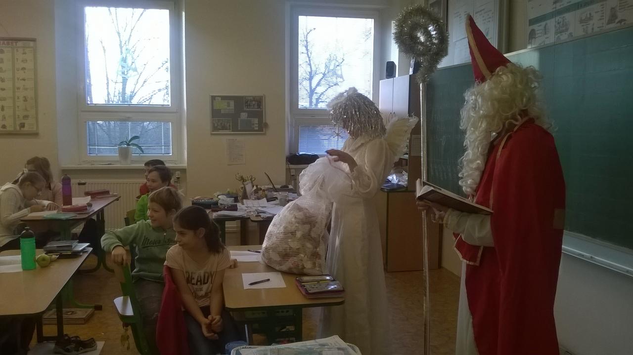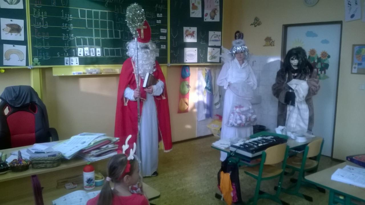 Mikuláš, anděl a čert v naší škole.