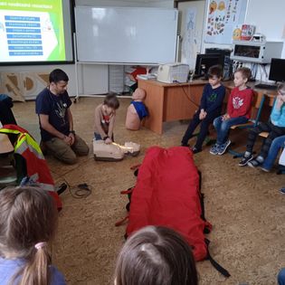Se základy první pomoci nás přišel seznámit záchranář Lukáš Verfl.